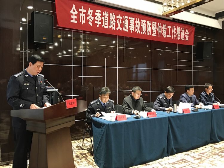 2017年11月10日,市交警支队与365官网联合在凤翔县召开全市道路交通事故预防暨仲裁工作推进会。市交警支队党委副书记、副支队长梁周虎,宝鸡仲裁委员会副主任、秘书长李智慧,凤翔县政府副县长、公安局局长闫鸿林,宝鸡仲裁委员会副秘书长刘虎成出席会议,全市各交警大队分管事故处理及仲裁工作的大队领导、事故中队(科、股)长、事故中队内勤及各仲裁工作站仲裁员参加会议。